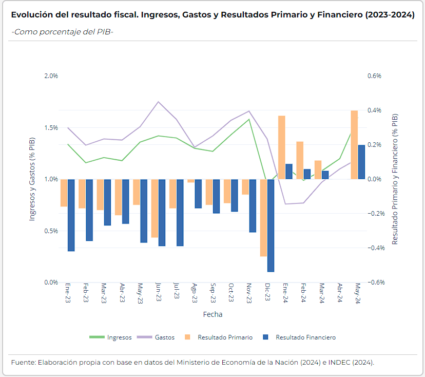 Análisis de la Evolución del Resultado Fiscal: Ingresos, Gastos y Resultados Primario y Financiero (2023-2024)