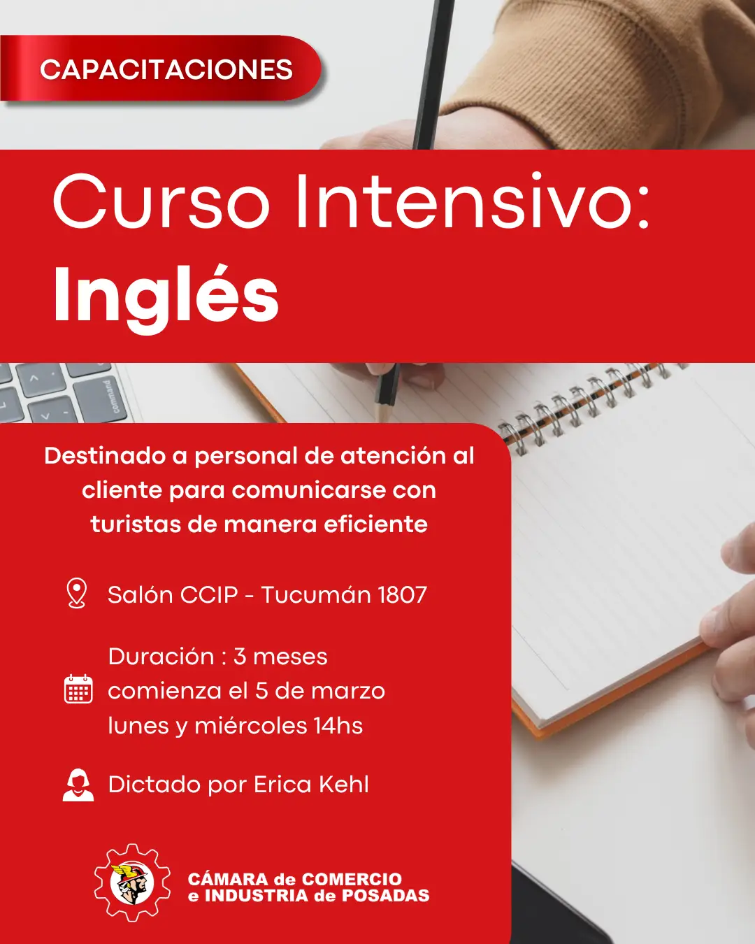 📅 Fecha de inicio: Martes 5 de marzo🕑 Horario: Lunes y miércoles, 14:00 hs📍 Lugar: Salón CCIP, Tucumán 1807👩🏫 Dictado por: Erica Kehl La Cámara de Comercio e Industria de Posadas invita a participar en el Curso Intensivo de Inglés, diseñado para personal de atención al cliente que necesite comunicarse de manera eficiente con turistas. […]